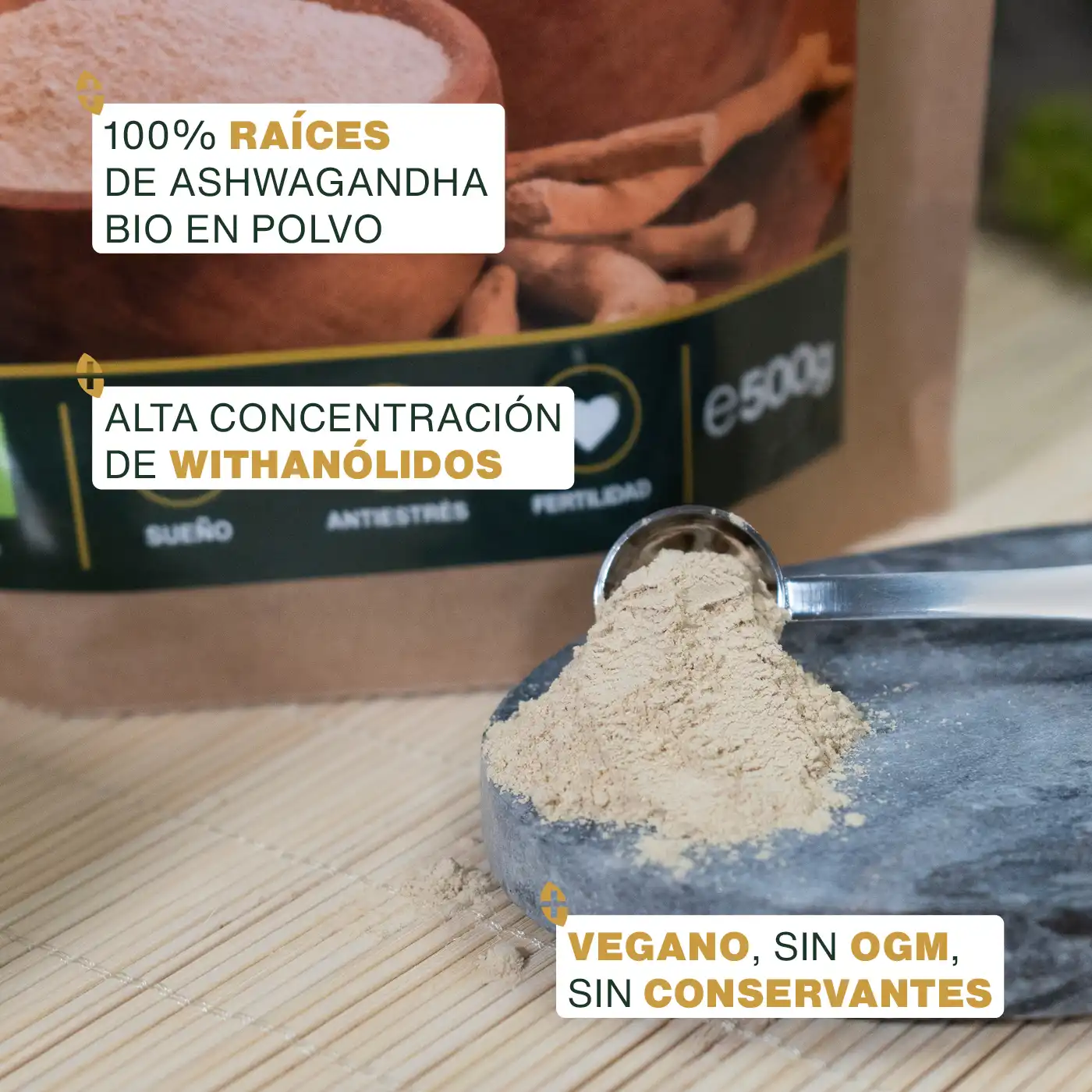 - CERTIFICADO ORGÁNICO: bolsa kraft resellable y reciclable de 500g de raíces de Ashwagandha en polvo orgánica de calidad superior amoseeds. 100% pura, vegana, sin aditivos, sin conservantes, sin OMG, sin pesticidas, sin colorantes artificiales, sin lactosa, sin soja y sin gluten. Cada lote es analizado por un laboratorio independiente para garantizar su calidad y pureza.