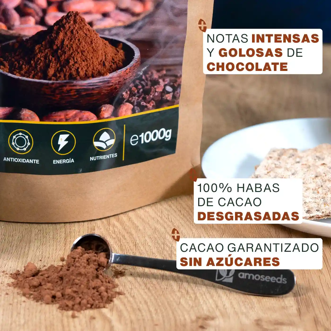 POTENTE ANTIOXIDANTE: el Cacao Bio es uno de los alimentos más antioxidantes del mundo. Su altísimo índice ORAC* (55653) demuestra la eficacia de este alimento para proteger nuestras células contra los efectos de los radicales libres responsables del envejecimiento prematuro. Gracias a su alto contenido en cobre, nuestro Cacao en polvo Bio asegura también el funcionamiento normal del sistema nervioso y la pigmentación normal del cabello y de la piel.