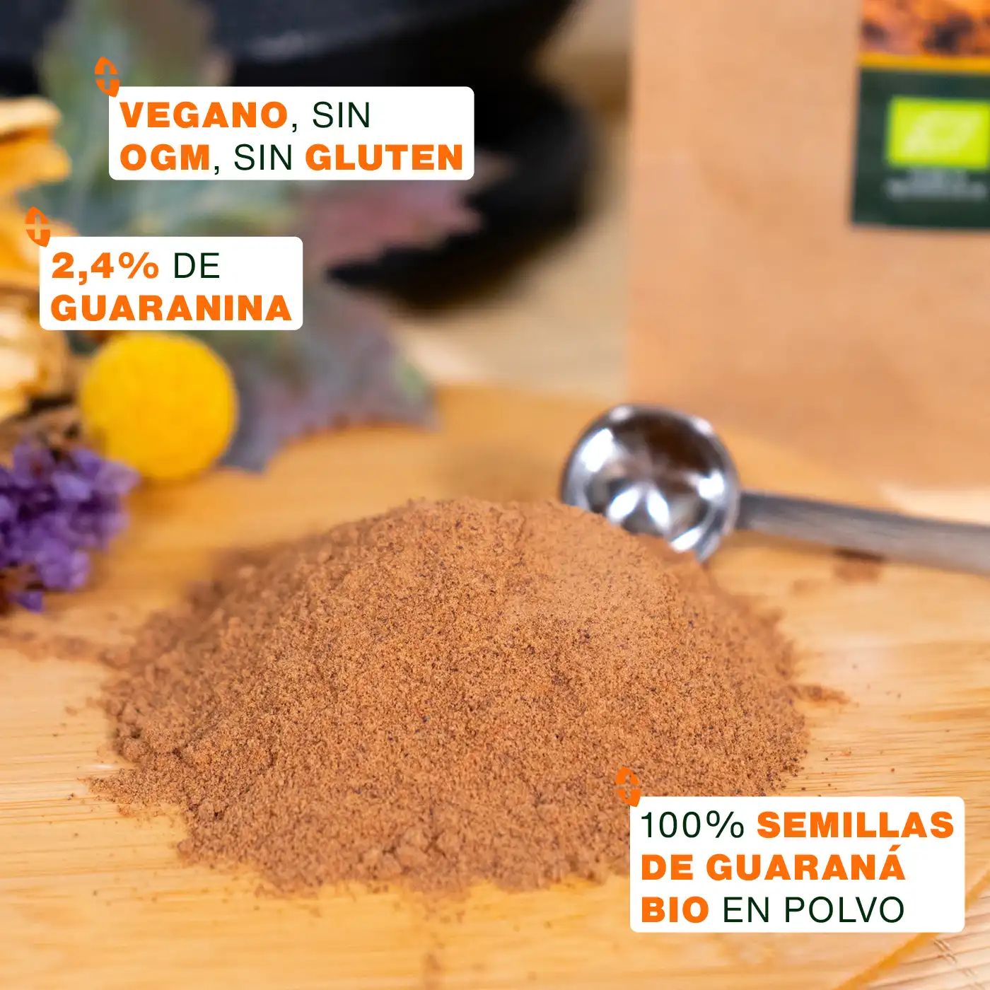 - CERTIFICADO ORGÁNICO: bolsa kraft resellable y reciclable de 70g de polvo de semillas de Guaraná orgánico de calidad superior Amoseeds. Producto 100% natural, puro, vegano, sin aditivos, sin conservantes, sin OGM, sin pesticidas, sin colorantes artificiales, sin lactosa y sin gluten. Cada lote es analizado por terceros para garantizar su calidad y pureza.
