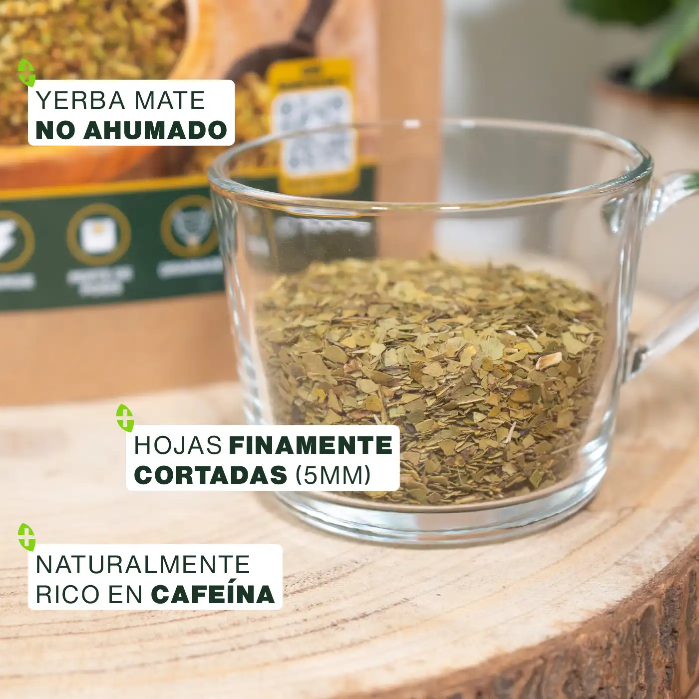 CALIDAD SUPERIOR, ALTERNATIVA AL CAFÉ: ahora considerada la tercera bebida con cafeína más consumida después del té y el café, la Yerba Mate Bio también es apreciada por sus numerosos beneficios para la salud. Hemos seleccionado cuidadosamente hojas de Mate Bio de calidad superior para ofrecerte una infusión delicada con notas ligeramente amargas, que evocan la finura del té verde. ¿Quieres vivir una experiencia auténtica inspirada en las tradiciones de los Guaraníes de América del Sur? Disfruta de nuestra Yerba Mate Bio en una calabaza con bombilla. Así, disfrutarás de todos los beneficios de esta bebida mientras te sumerges en una cultura ancestral rica en historia.